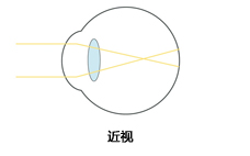 近視是指眼睛在晶狀體未調節的“無調節狀態”時,只能將遠處來的光線在視網膜之前形成焦點。在矯正視力時,使用凹透鏡進行矯正。雖然不太清楚導致近視的具體原因,但是我們認為在以下情況下會導致近視。