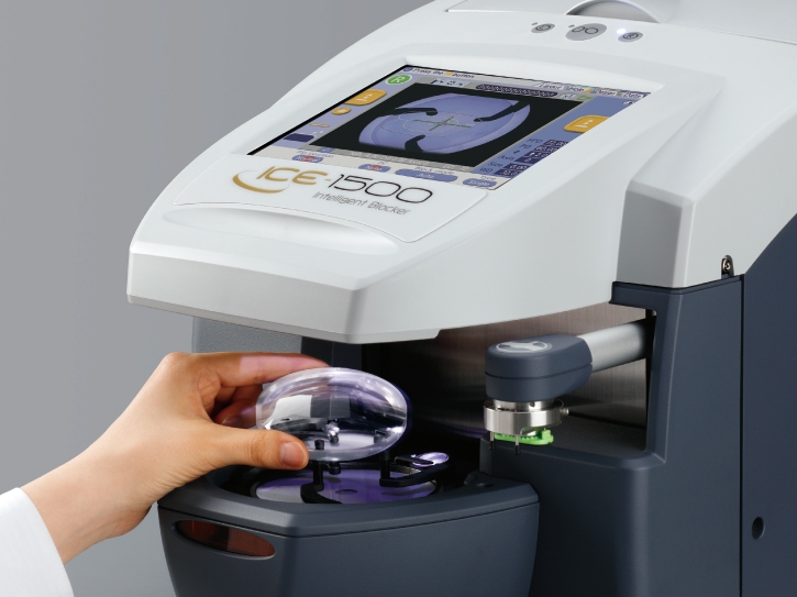 利用自動鏡片測量(ALM)功能,操作員能夠輕松定位單光鏡片,無需焦度計打點。提供四種測量方法,可根據鏡片類型選擇適當方法。ICE-1500采用有特色的的創新設計,實現快速、精確的自動中心定位。